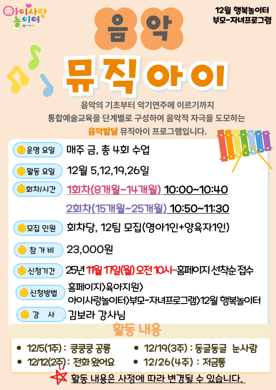 ■ 신청기간 : 11/17(월) 오전 10시~ 선착순 접수 입니다.