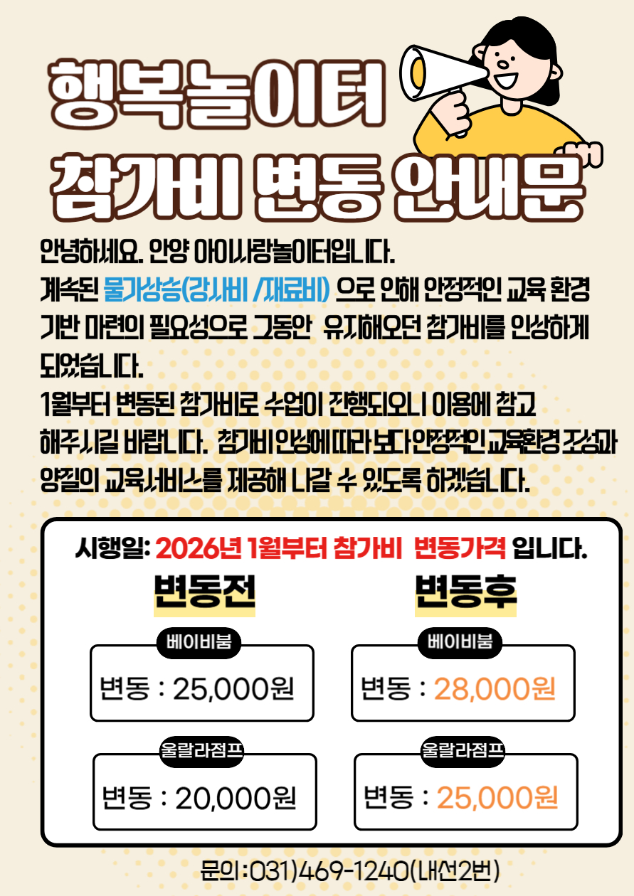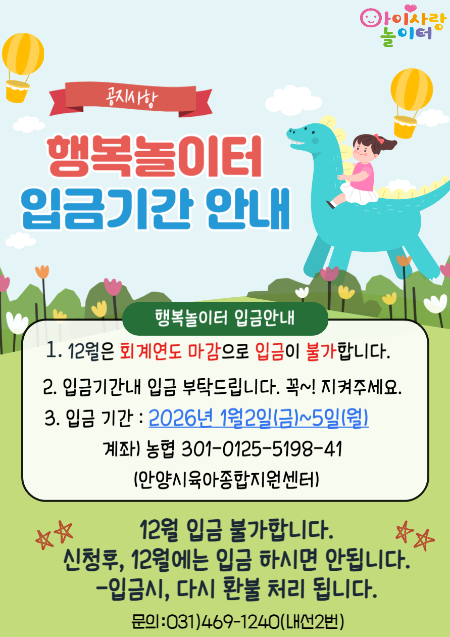 입금계좌 301-0125-5198-41 안양시육아종합지원센터