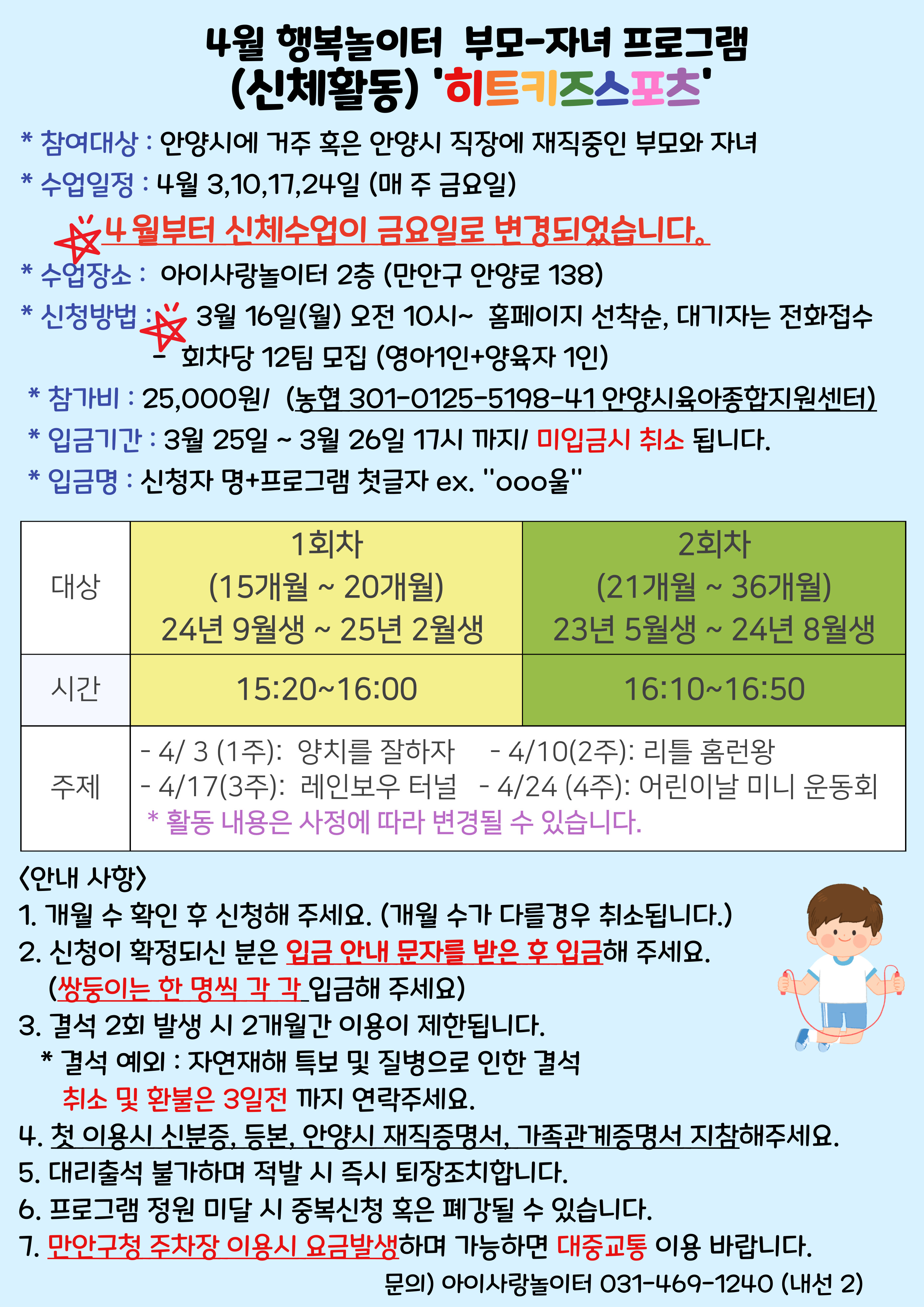 | 입금계좌 | 농협 301-0125-5198-41 안양시육아종합지원센터 |