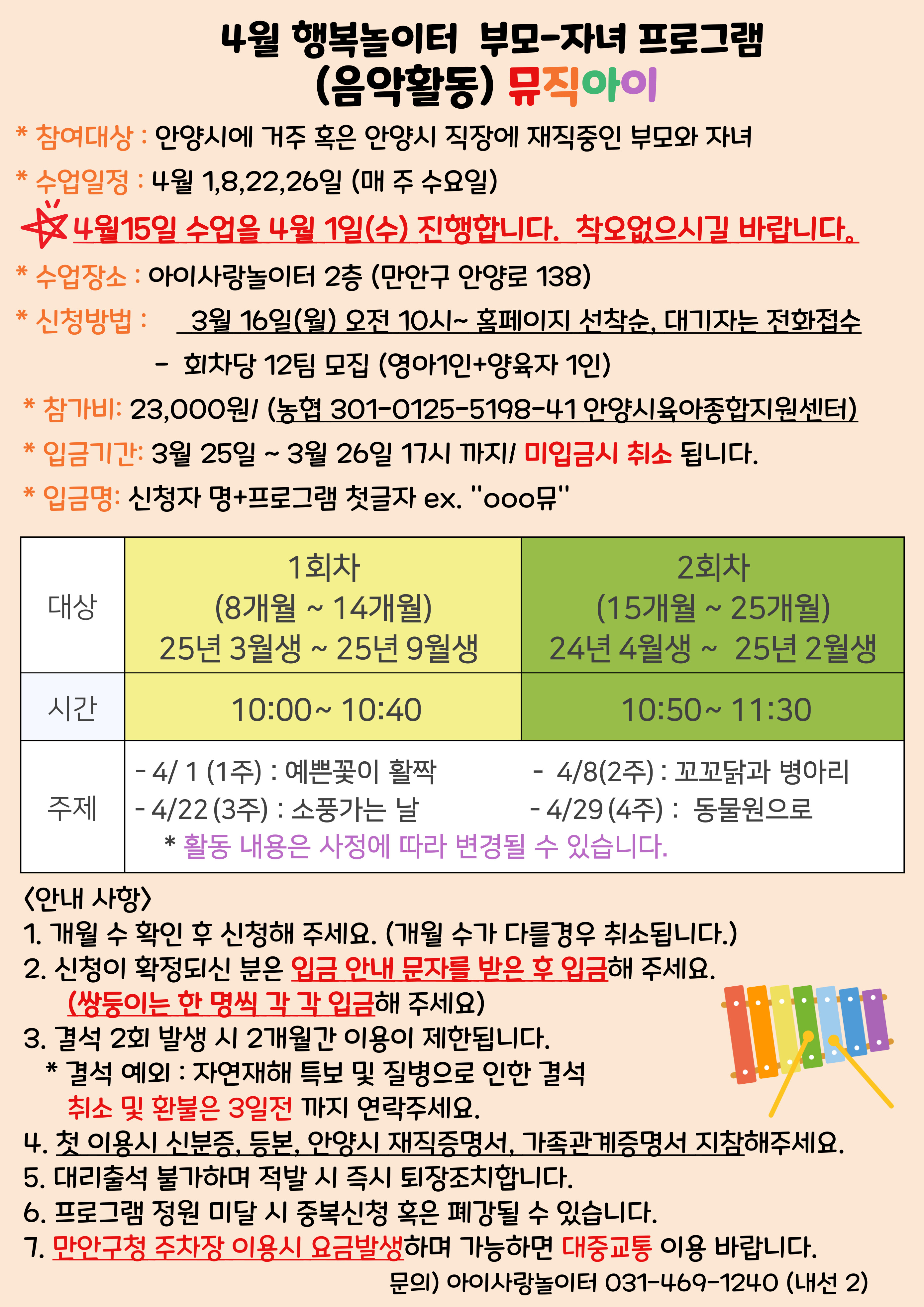 | 입금계좌 | 농협 301-0125-5198-41 안양시육아종합지원센터 |