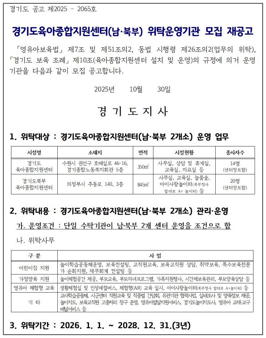 (공고문) 경기도육아종합지원센터(남·북부) 위탁운영기관 모집 재공고.hwp