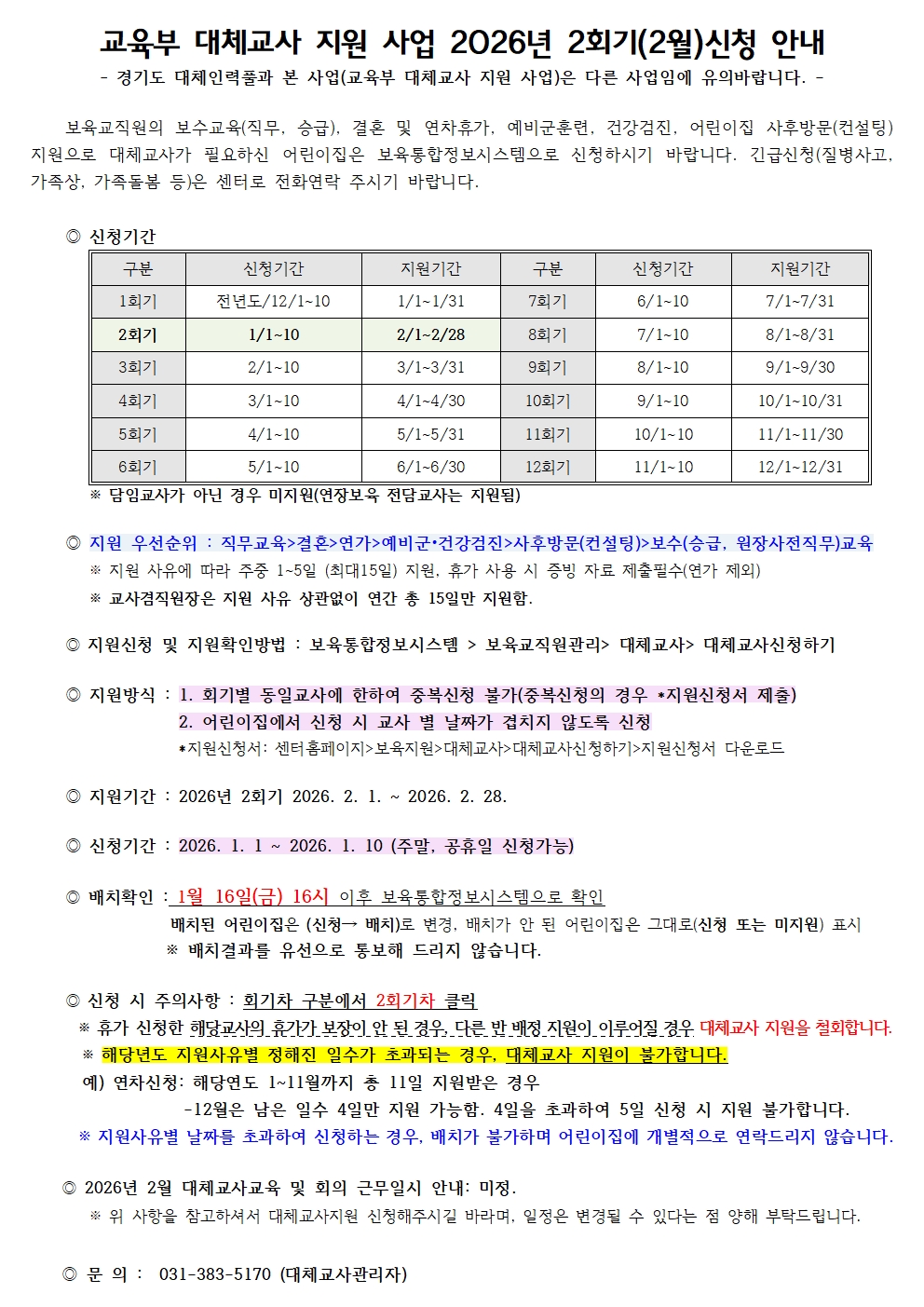 [센터] 2026년 교육부 대체교사2회기(2월) 신청안내