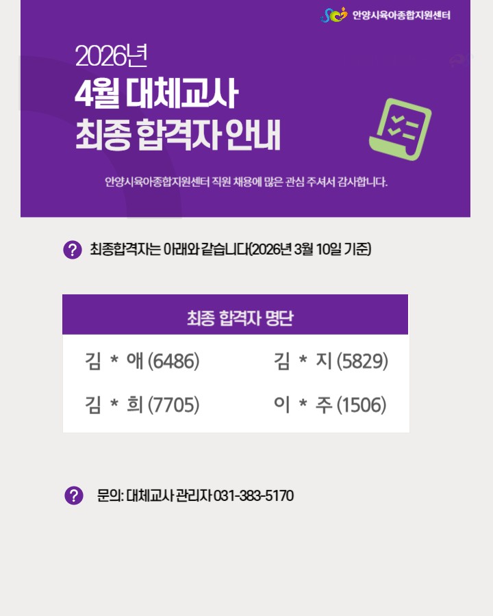 [센터] 대체교사 최종 합격자 명단