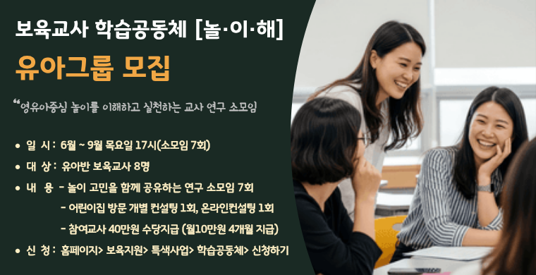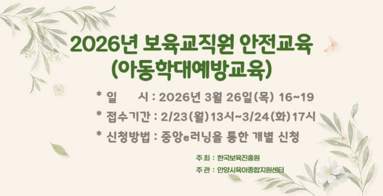 - 경기도교육청] 영유아마음건강지원을 위한 교사 상호작용 역량 강화 연수 신청안내2026.04.13